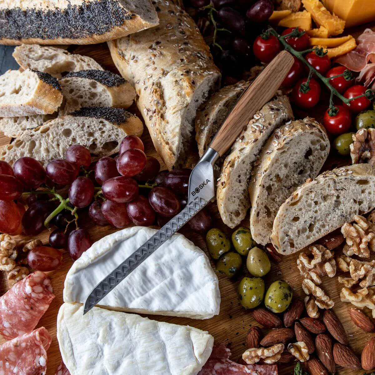 Het Boska Kaasmes Zachte Kaas Oslo+ is een echte aanrader voor iedere hobbykok of kaasliefhebber. Het mes is perfect voor het snijden van brie of mozzarella. Doordat het lemmet heel dun en non-stick is blijft de kaas niet plakken tijdens het snijden. Het houten handvat zorgt er daarnaast ook voor dat je veel grip houdt tijdens het snijden en dat je kaasmes er stijlvol uit ziet. De ideale oplossing om zachte kaas te snijden dus!