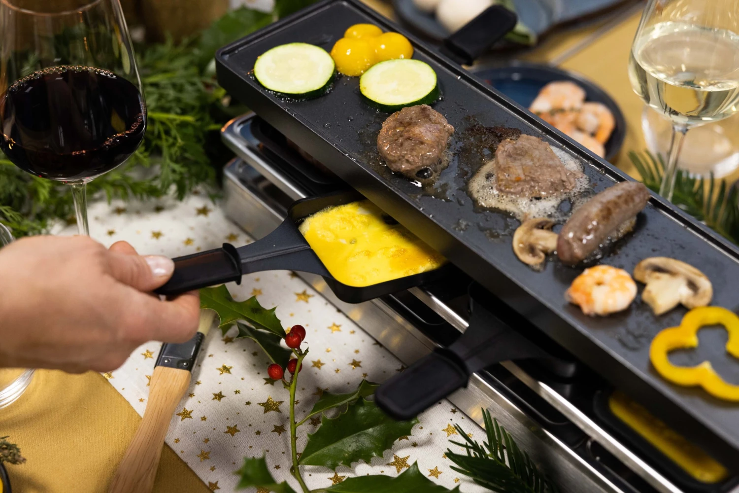Gourmetten draait om een samenkomst van mensen in combinatie met lekkere gerechtjes! Het Espressions Gourmetstel Slim 42 x 13 cm is gemaakt van RVS. Het gourmetstel beschikt over een afneembare bakplaat met anti-aanbaklaag. Hierdoor is de bakplaat gemakkelijk schoon te maken. De grill is geschikt voor 4 personen en wordt geleverd met 4 pannetjes en 4 spatels. Met deze pannetjes kun je ‘racletten’: van bovenaf verwarmen. Is je gezelschap groter? Dankzij het meegeleverde koppelsnoer kun je twee gourmetstellen aan elkaar koppelen!