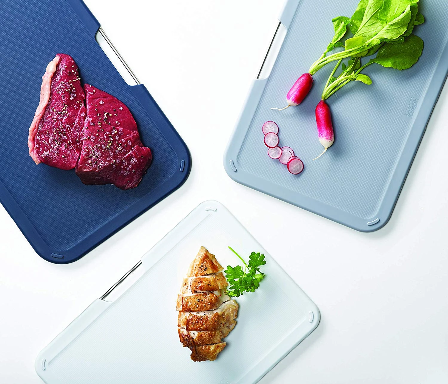 Deze mooie Joseph Joseph snijplankenset wordt geleverd met een handige opbergstandaard, deze opbergstandaard geeft elke keuken een stijlvolle look en maakt de snijplanken ook gemakkelijk toegangbaar. Elke plank heeft een andere maat die geschikt is voor een reeks aan voedselvoorbereidende taken. De opbergstandaard houdt elke plank uit elkaar, laat lucht circuleren voor een gelijkmatige droging en bevat antislipvoetjes.