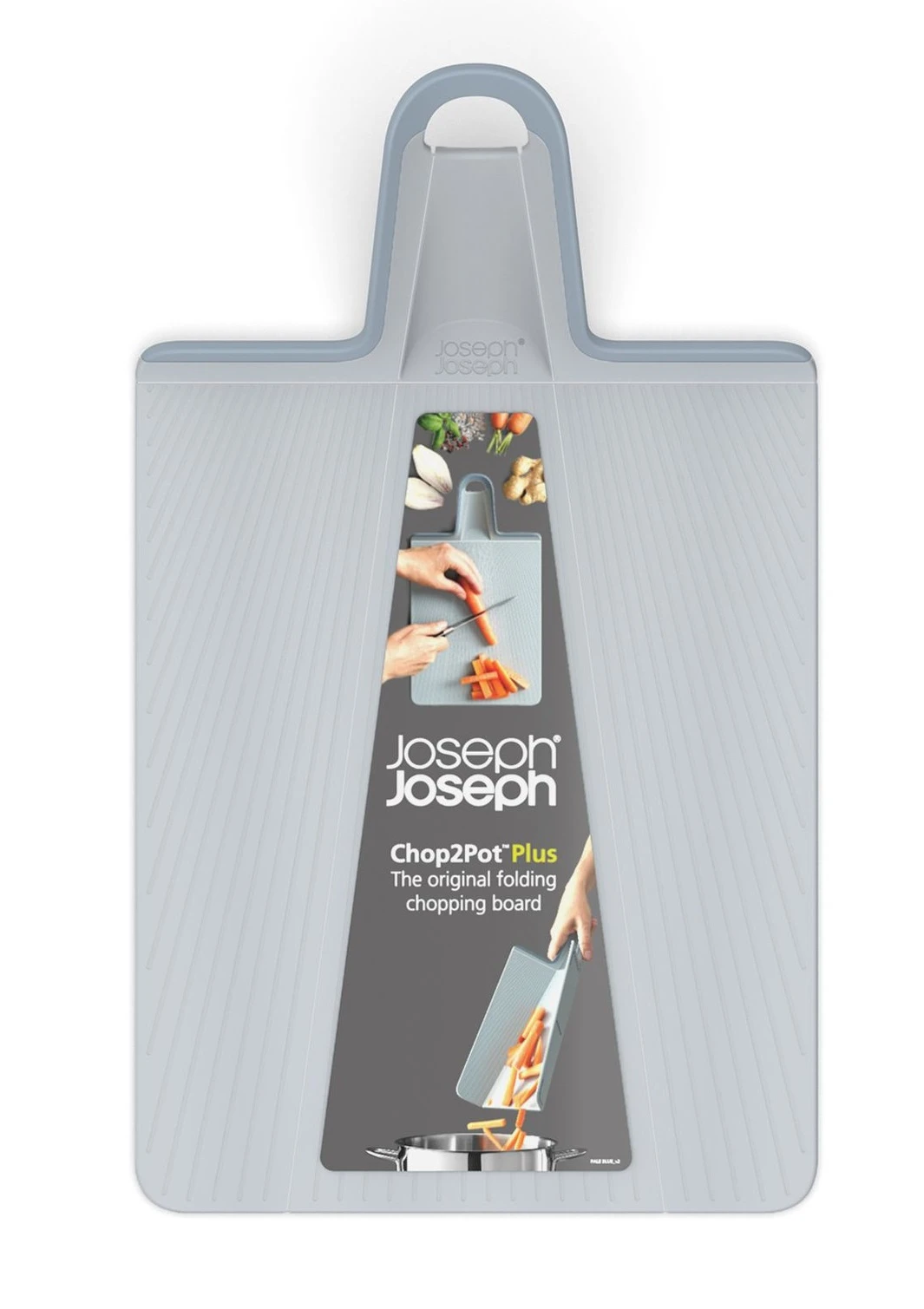 Met de prijswinnende opvouwbare snijplank uit de Joseph Joseph Chop2Pot collectie kun je ingrediënten snijden en vervolgens in een pan doen zonder het risico te lopen dat ze onderweg vallen. Door de scharnier-techniek die in de snijplank is verwerkt kan van de snijplank eenvoudig een soort schep gemaakt worden, waardoor je het gesneden voedsel gericht en makkelijk van de snijplank af kunt schuiven.