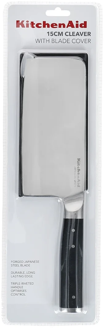 Keukenhakmes met een 15 cm lang lemmet van gehard Japans koolstofstaal. Ontworpen voor het snijden van groenten en vlees en het hakken van kruiden. Uitgerust met een comfortabel handvat van hard en duurzaam materiaal met drievoudige klinknagels. Het mes wordt geleverd met een lemmetbeschermhoes. Het is vaatwasmachinebestendig, maar handwassen wordt aanbevolen om de snijeigenschappen van het lemmet en de esthetiek van het mes zelf langer te behouden.