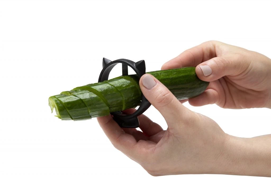 Komkommers en courgettes hebben geen schijn van kans, Curly Cat is op jacht! Draai er een door de messen van Curly Cat en zie de magie gebeuren! Je houdt perfecte groentekrullen over om je bord te versieren of je favoriete drankje te garneren.