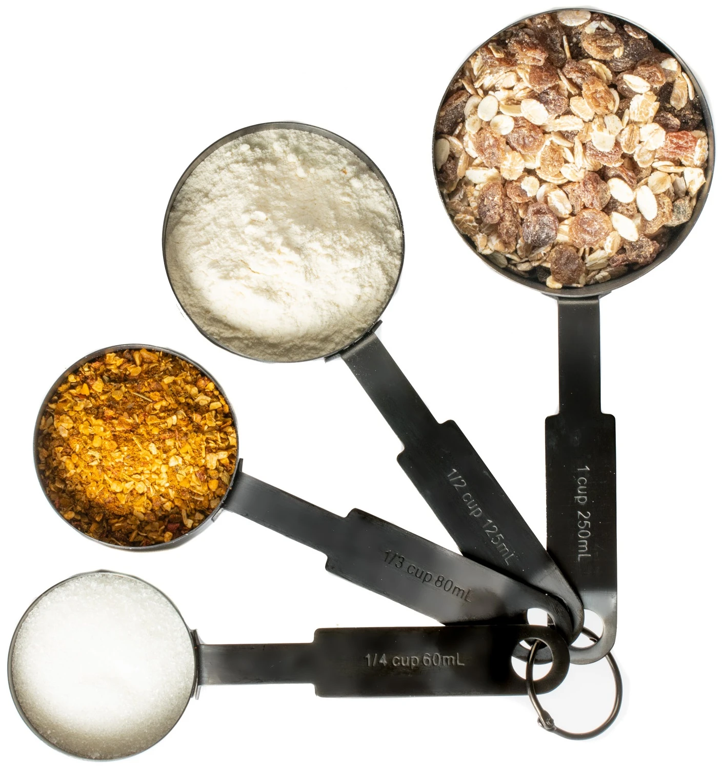De set Cookinglife maatschepjes zwart bestaat uit 4 verschillende maatschepjes. De inhoud van elk schepje is als volgt: