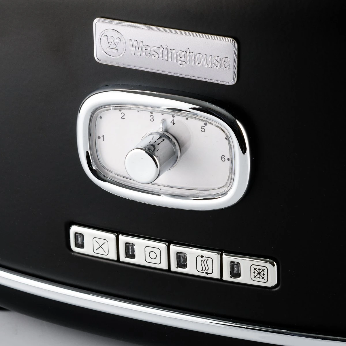De Westinghouse Retro Broodrooster heeft een automatisch centreersysteem waardoor het brood wordt bewaard in het midden voor gelijkmatige bruiningsresultaten aan beide zijden.