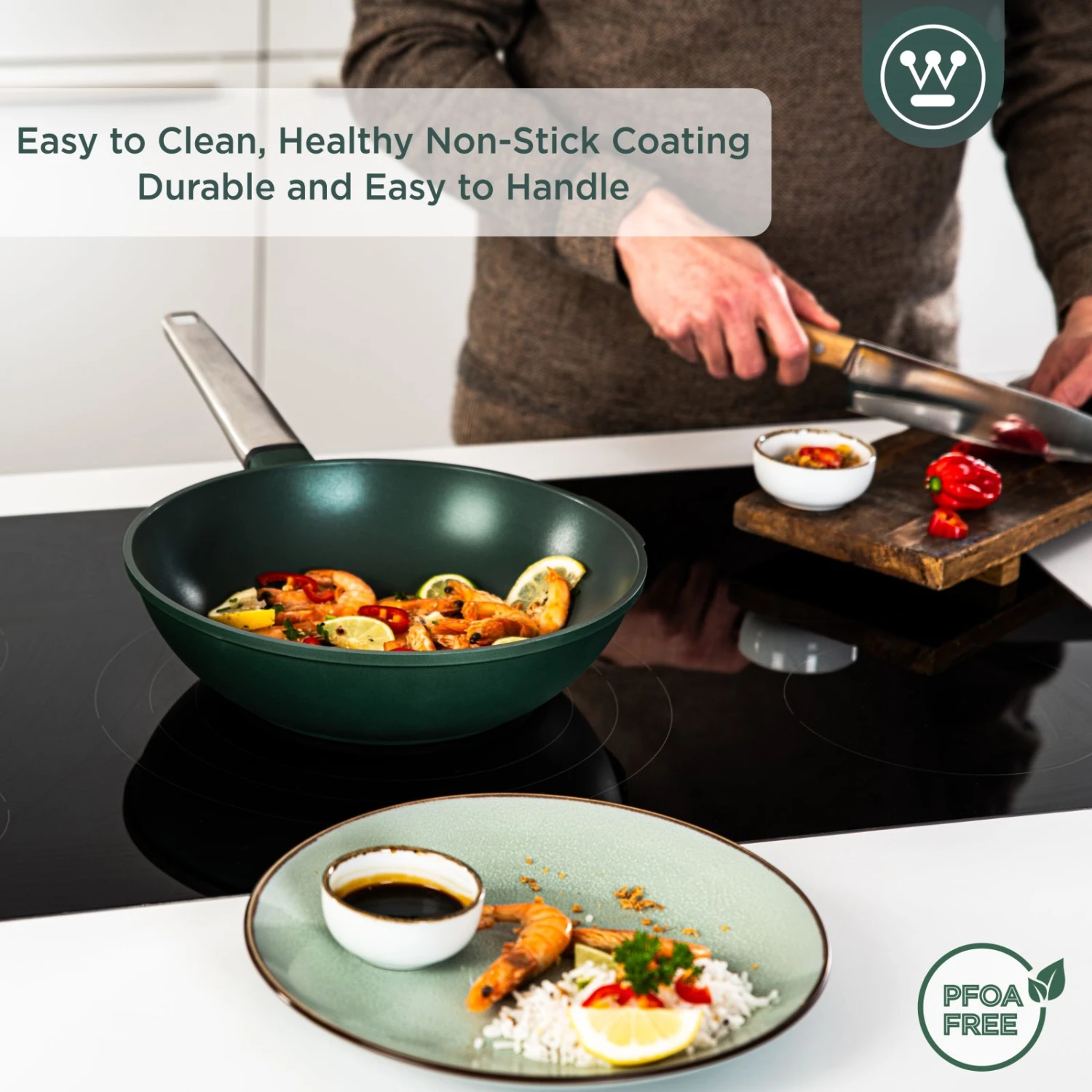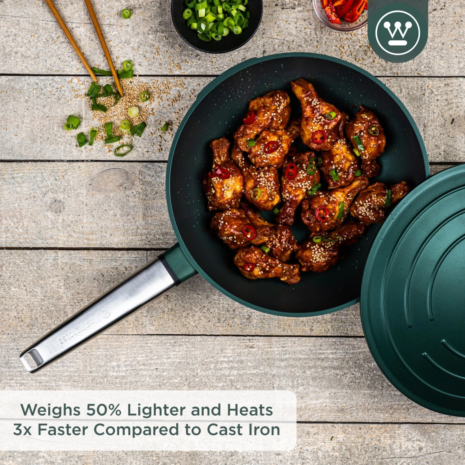Westinghouse Wokpan Performance – Gracious Green – ø 28 Cm – Standaard Anti-aanbaklaag