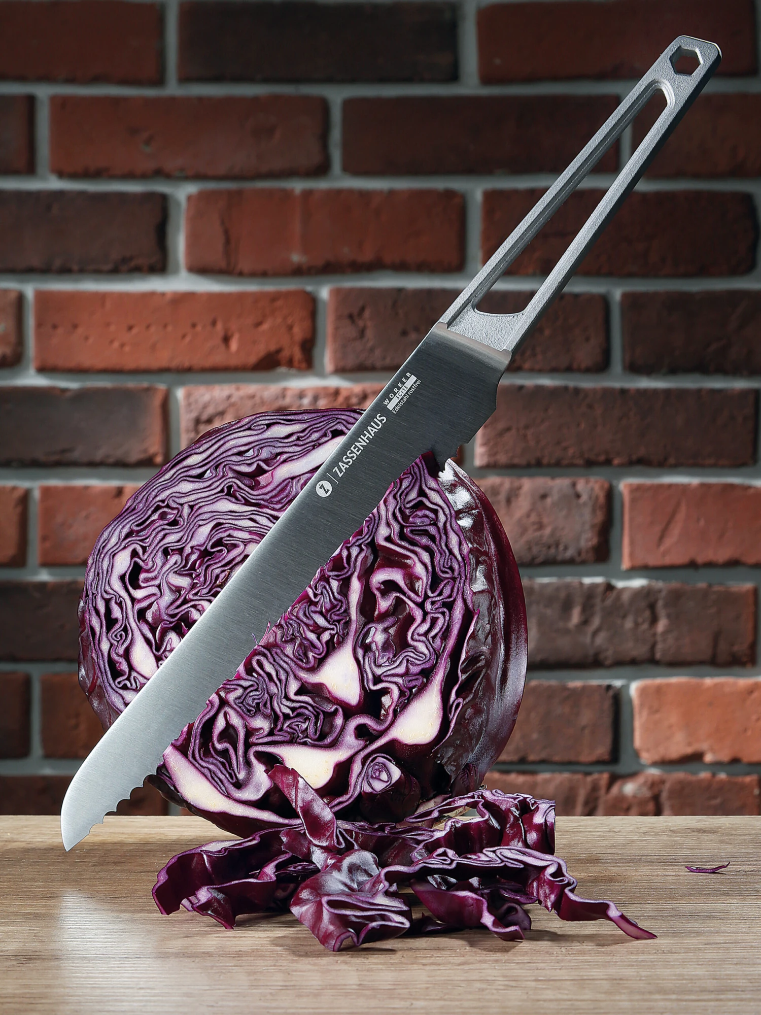 Ben je opzoek naar een mes wat gemakkelijk door een harde korst heen gaat? Het Zassenhaus Broodmes Worker 20 cm gebruik je voor het vlot snijden van brood en baguette. Maar ook voor andere harde producten als pompoen, meloen, knolselderij en ananas. De robuuste kartelrand van dit broodmes redt zich met iedere korst en het handvat ligt lekker in de hand.